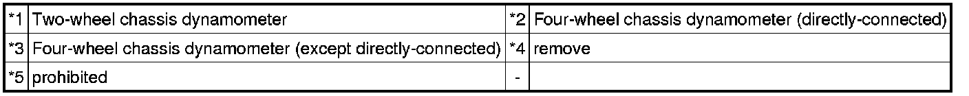 * Be sure to follow the instructions specified in the illustration. Failure to do so may cause deterioration of 4WD system function, malfunction of drivetrain components and risk of the vehicle jumping off the dynamometer.