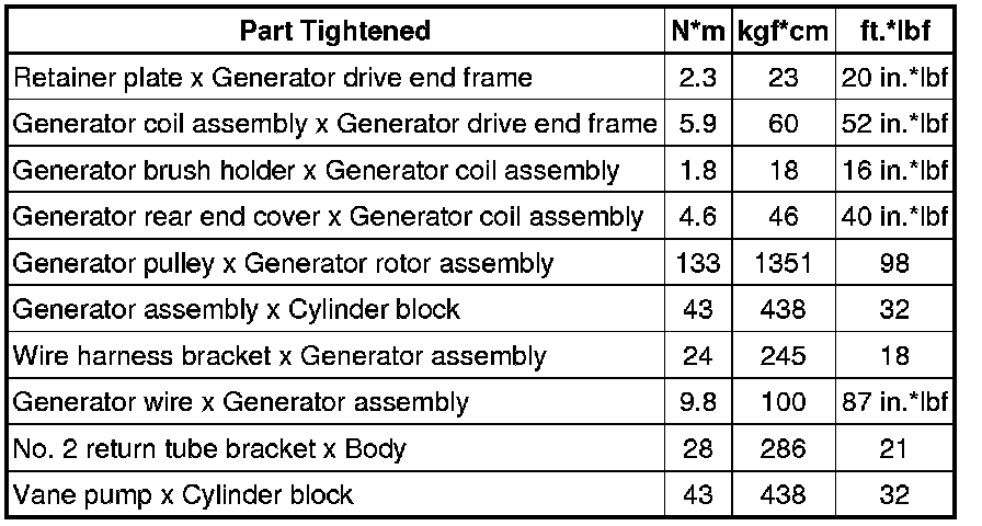 SPECIFICATIONS: 1UR-FE BATTERY / CHARGING: TORQUE SPECIFICATIONS