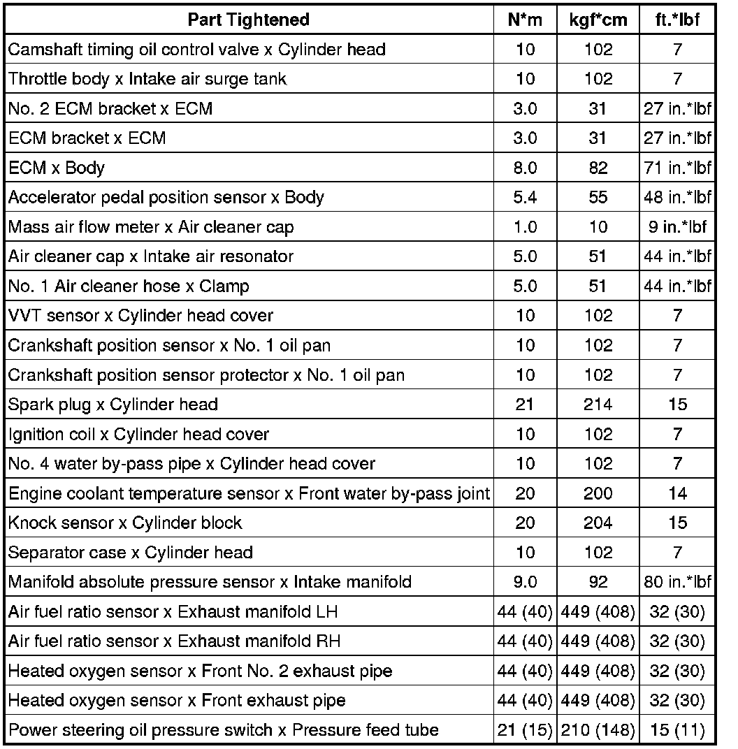 SPECIFICATIONS: 1UR-FE ENGINE CONTROL: TORQUE SPECIFICATIONS