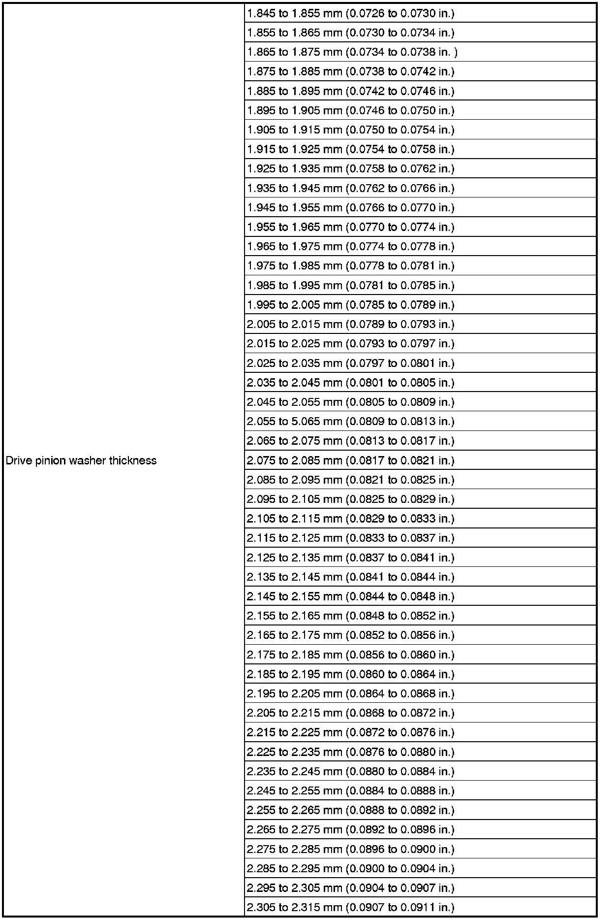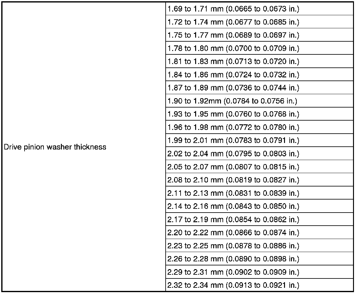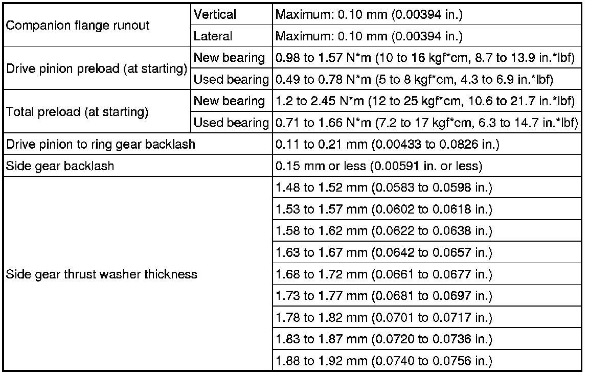 SPECIFICATIONS: AXLE AND DIFFERENTIAL: SERVICE DATA