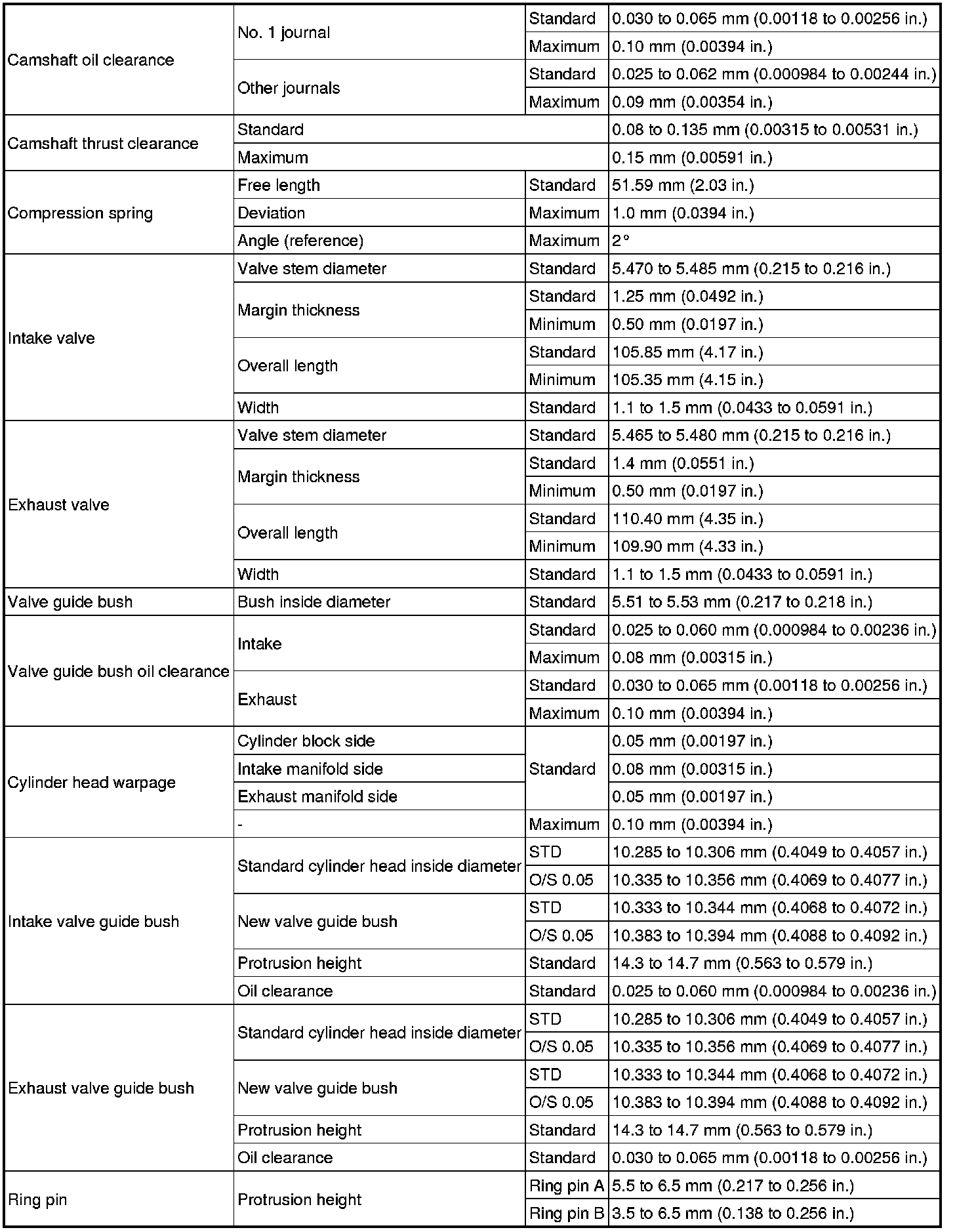 SPECIFICATIONS: 1UR-FE ENGINE MECHANICAL: SERVICE DATA