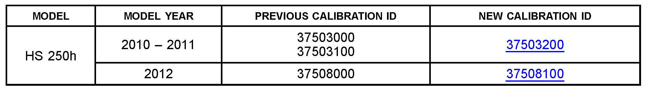^ Calibration ID(s) [Refer to the Calibration Identification Chart for the NEW CALIBRATION ID]