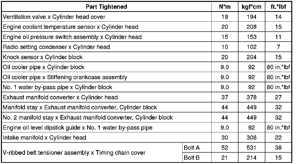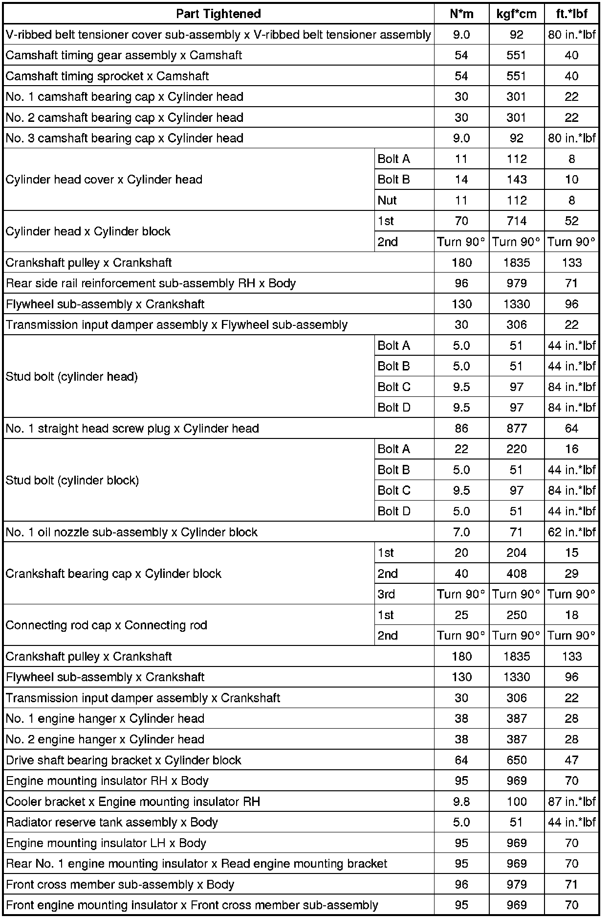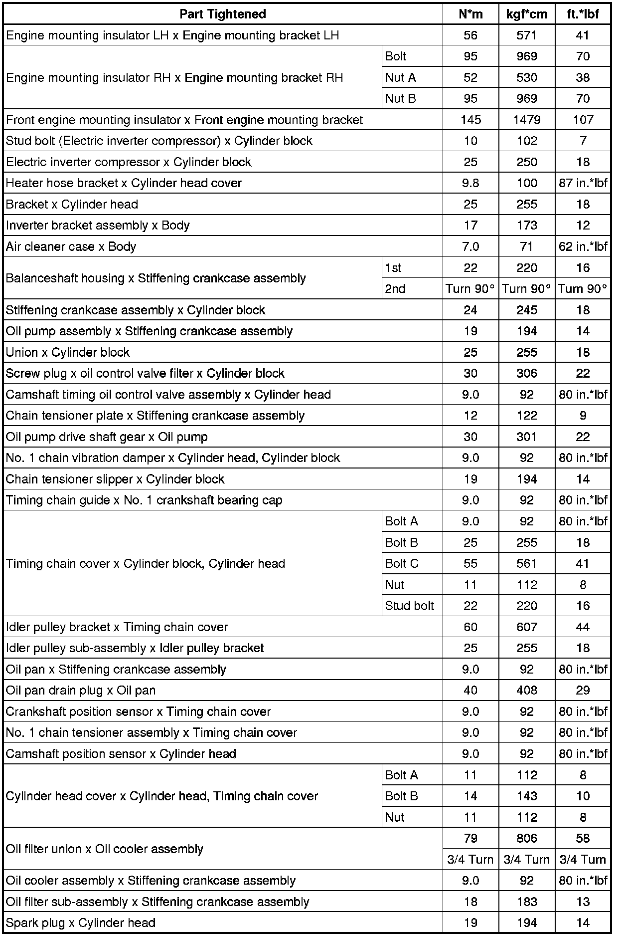 SPECIFICATIONS: 2AZ-FXE ENGINE MECHANICAL: TORQUE SPECIFICATIONS
