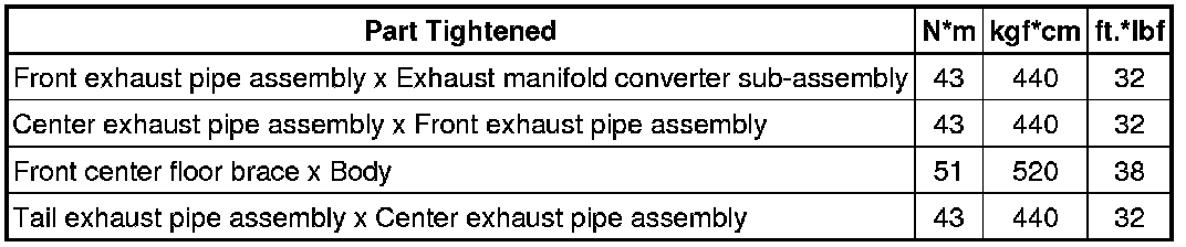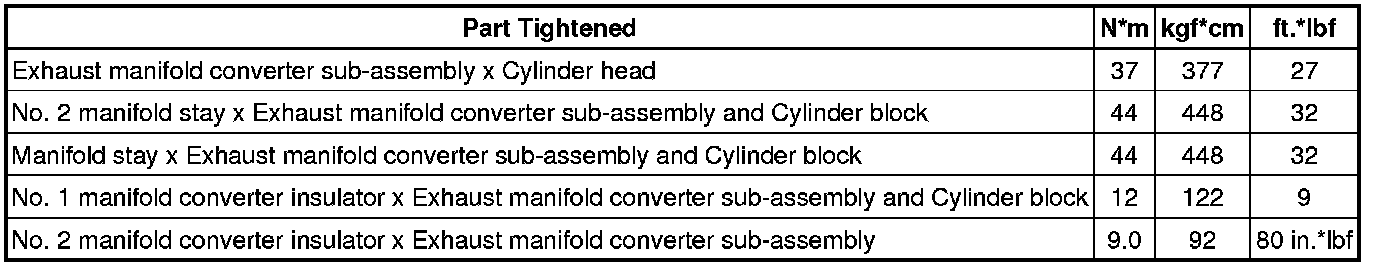 SPECIFICATIONS: 2AZ-FXE INTAKE / EXHAUST: TORQUE SPECIFICATIONS