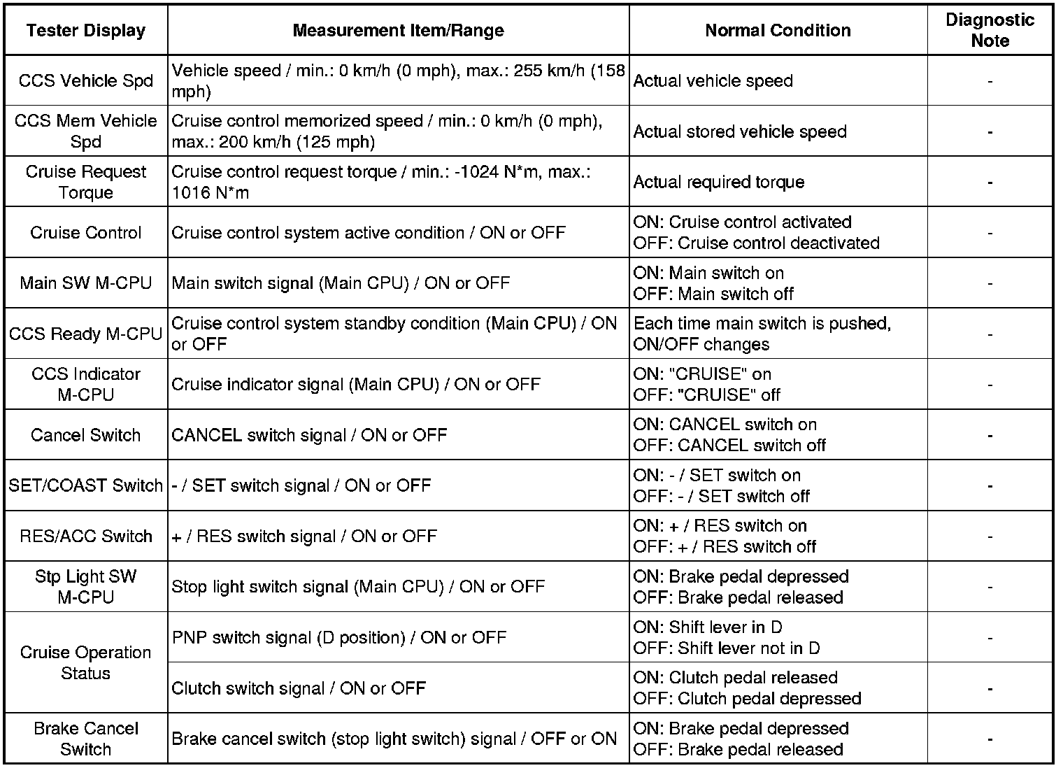 CRUISE CONTROL: CRUISE CONTROL SYSTEM: DATA LIST / ACTIVE TEST