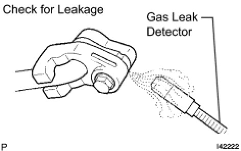 (c) Using a gas leak detector, check the refrigerant line for leakage.