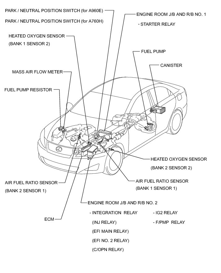 4GR-FSE ENGINE CONTROL SYSTEM: SFI SYSTEM: PARTS LOCATION