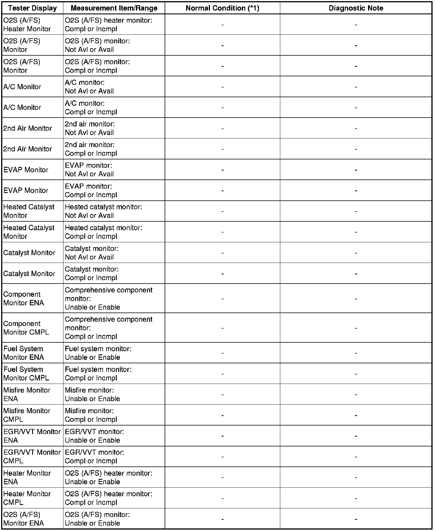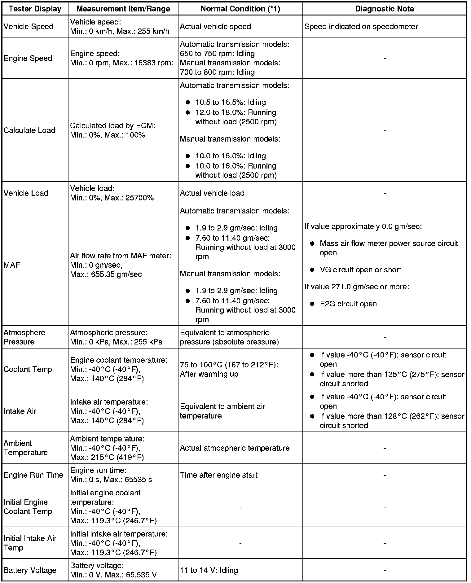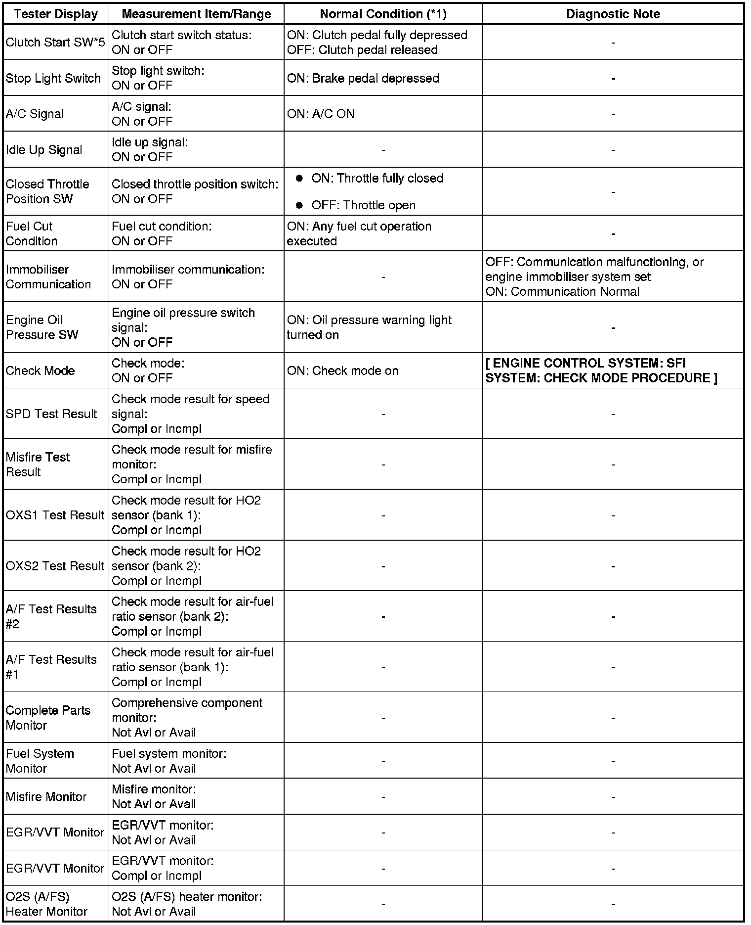 * *1: If no idling conditions are specified, the transmission gear selector lever should be in the N or P position, and the A/C switch and all accessory switches should be OFF.