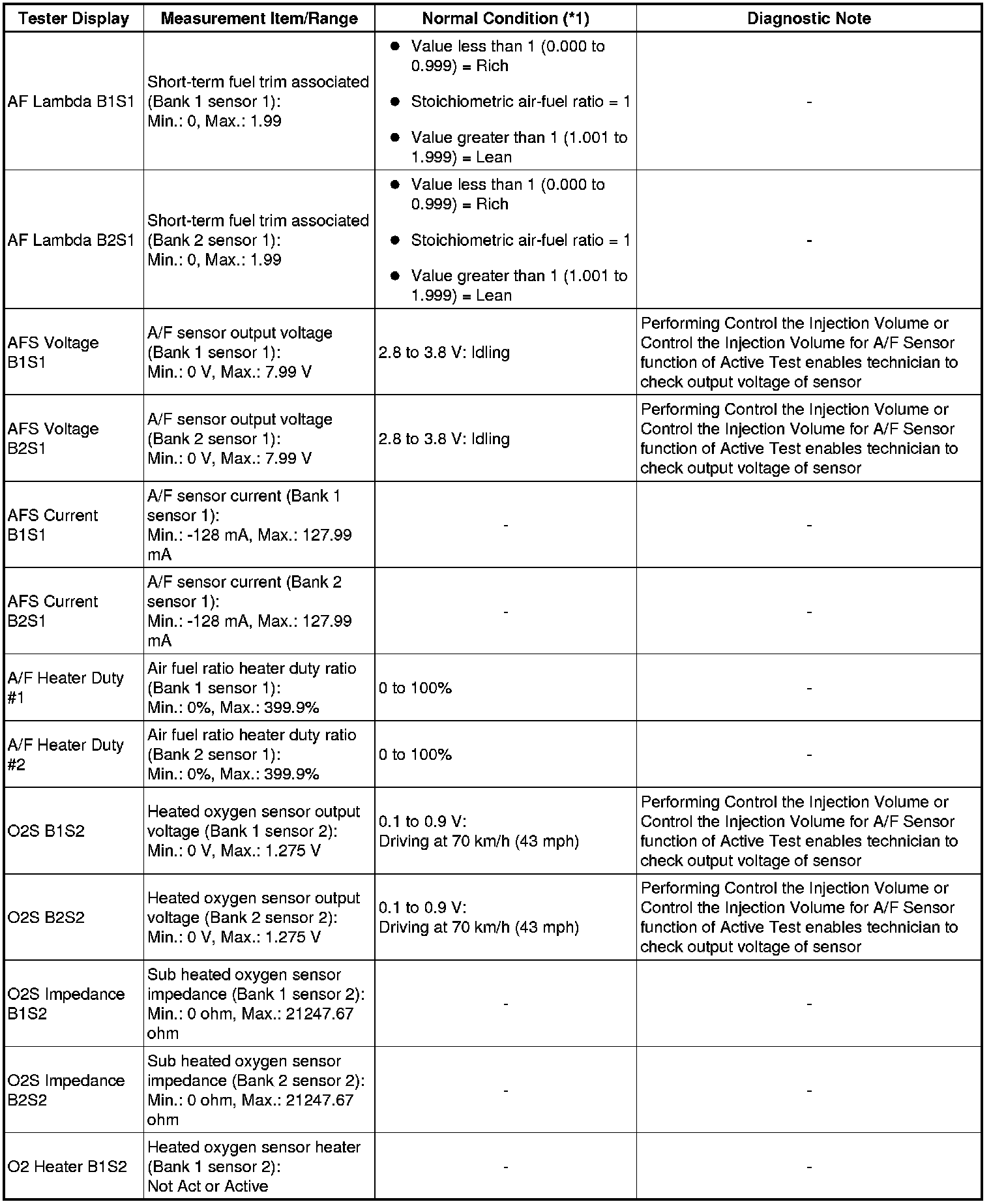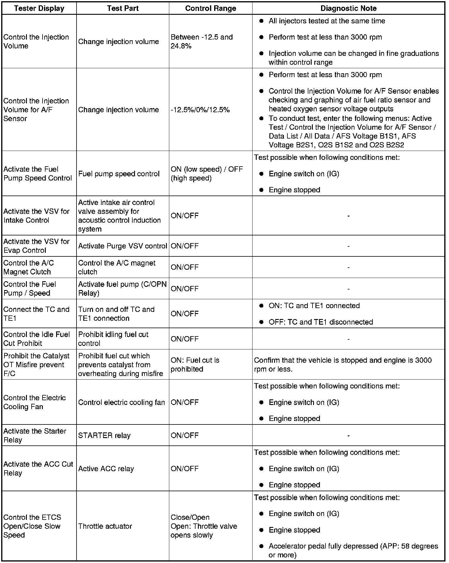 (e) Perform an Active Test by referring to the table below.