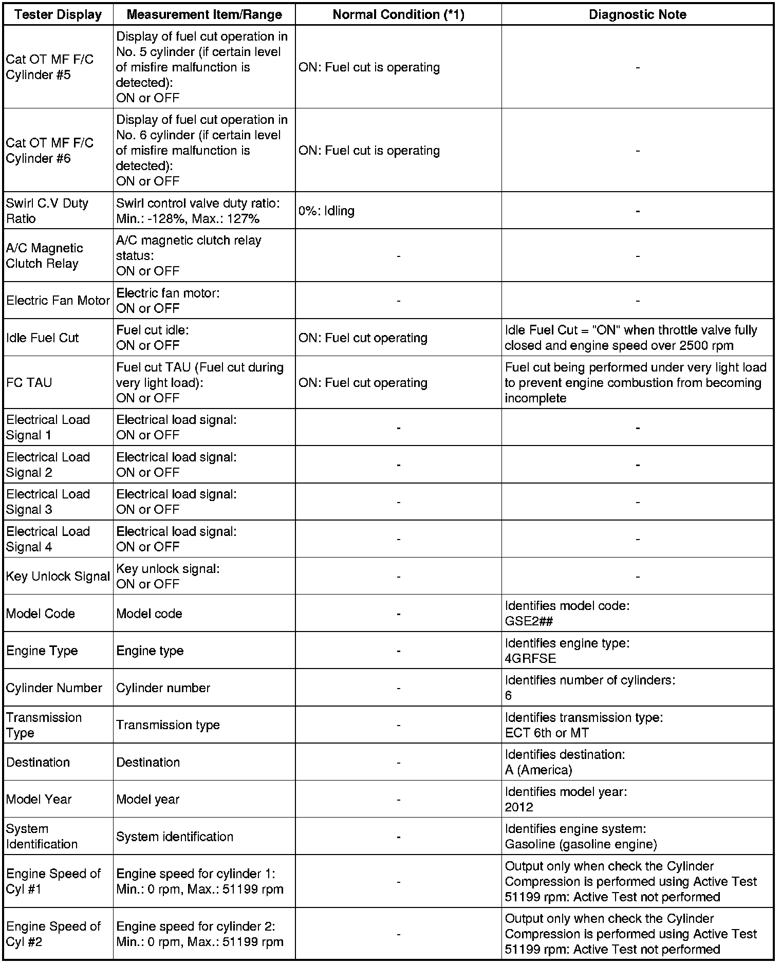 4GR-FSE ENGINE CONTROL SYSTEM: SFI SYSTEM: DATA LIST / ACTIVE TEST