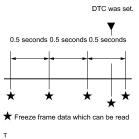 (b) The ECM records engine conditions in the form of freeze frame data every 0.5 seconds. Using Techstream, five separate sets of freeze frame data, including the data values at the time when the DTC was set, can be checked.