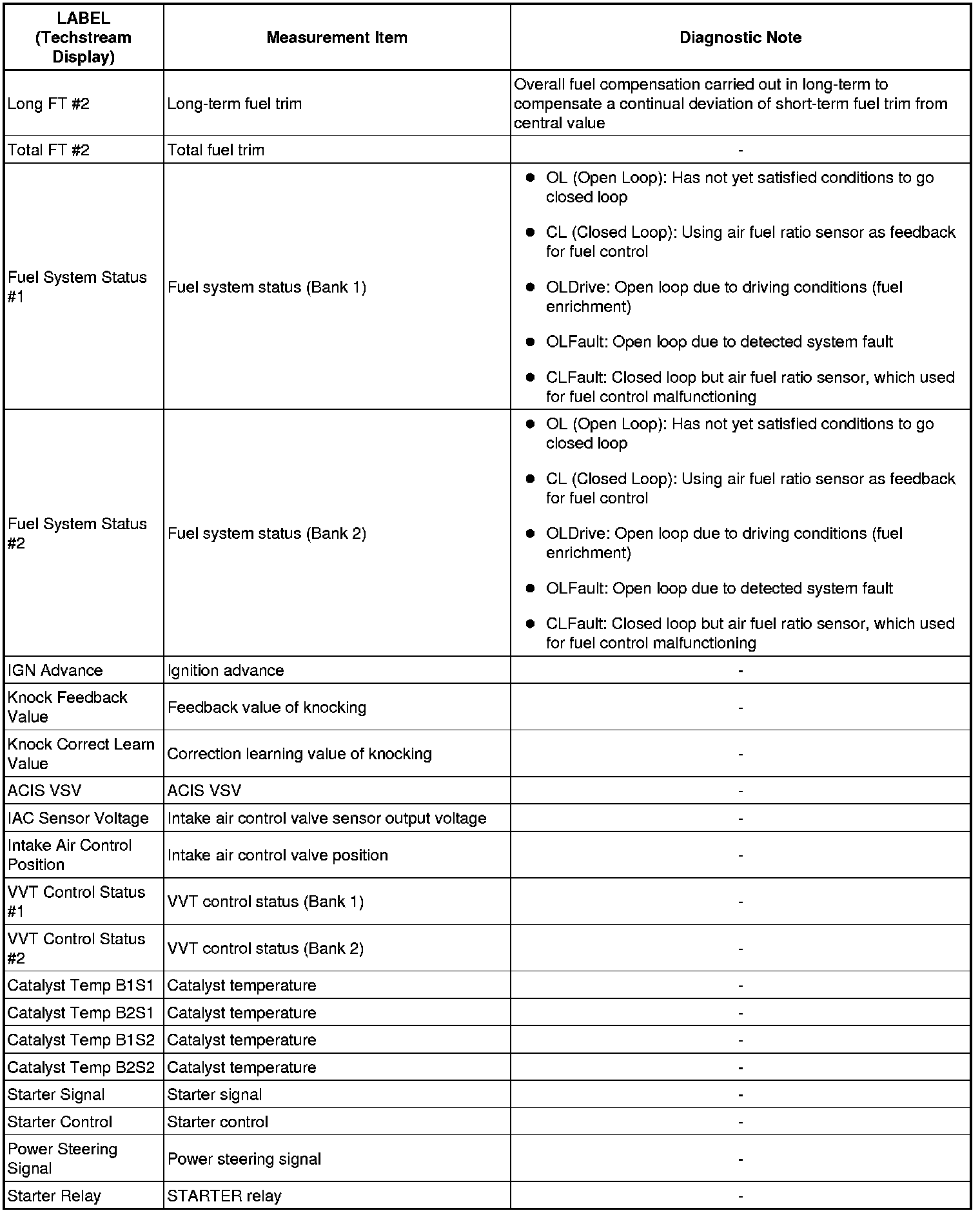 4GR-FSE ENGINE CONTROL SYSTEM: SFI SYSTEM: FREEZE FRAME DATA