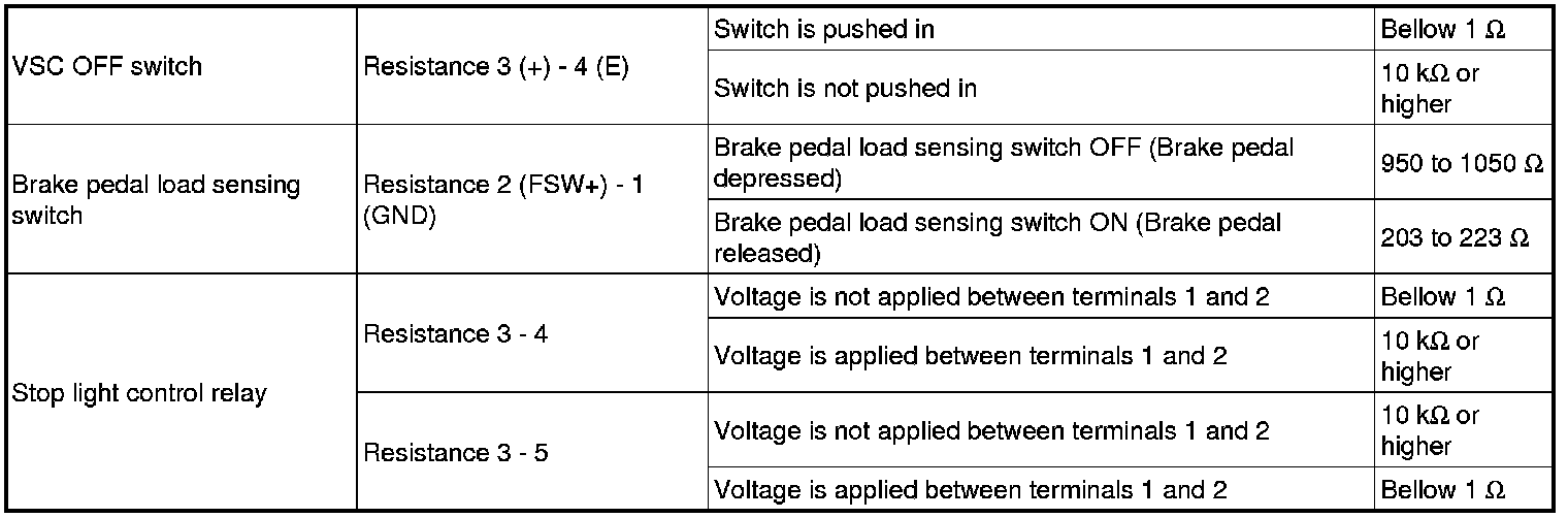 SERVICE SPECIFICATIONS: BRAKE CONTROL: SERVICE DATA