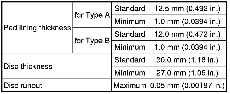 SERVICE SPECIFICATIONS: BRAKE: SERVICE DATA