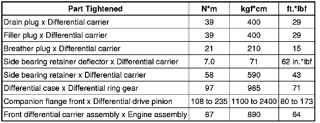 SERVICE SPECIFICATIONS: DIFFERENTIAL: TORQUE SPECIFICATIONS