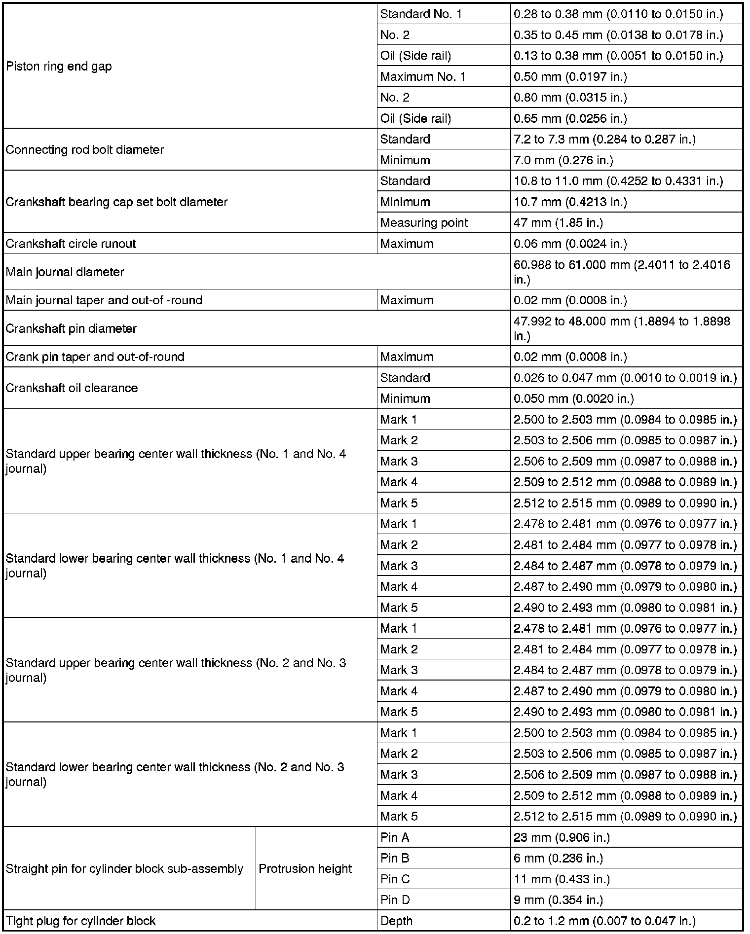 SERVICE SPECIFICATIONS: 4GR-FSE ENGINE MECHANICAL: SERVICE DATA