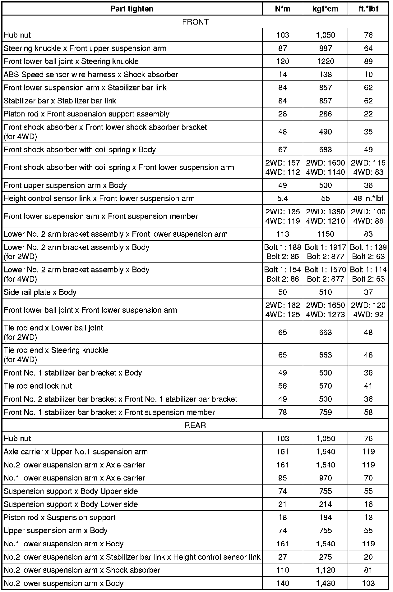 : TORQUE SPECIFICATIONS