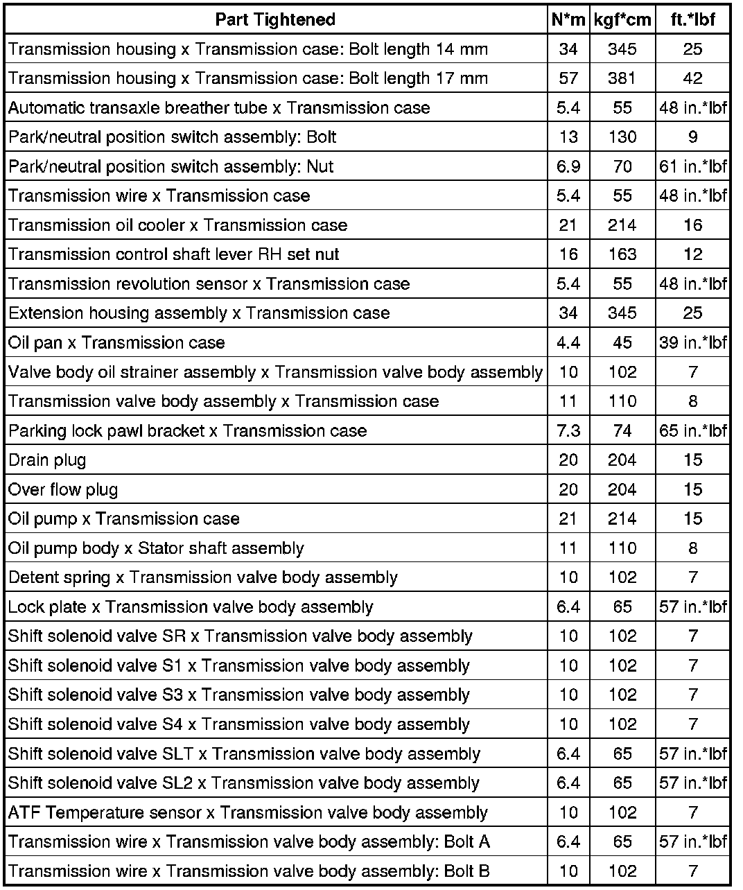 SERVICE SPECIFICATIONS: A960E AUTOMATIC TRANSMISSION: TORQUE SPECIFICATIONS