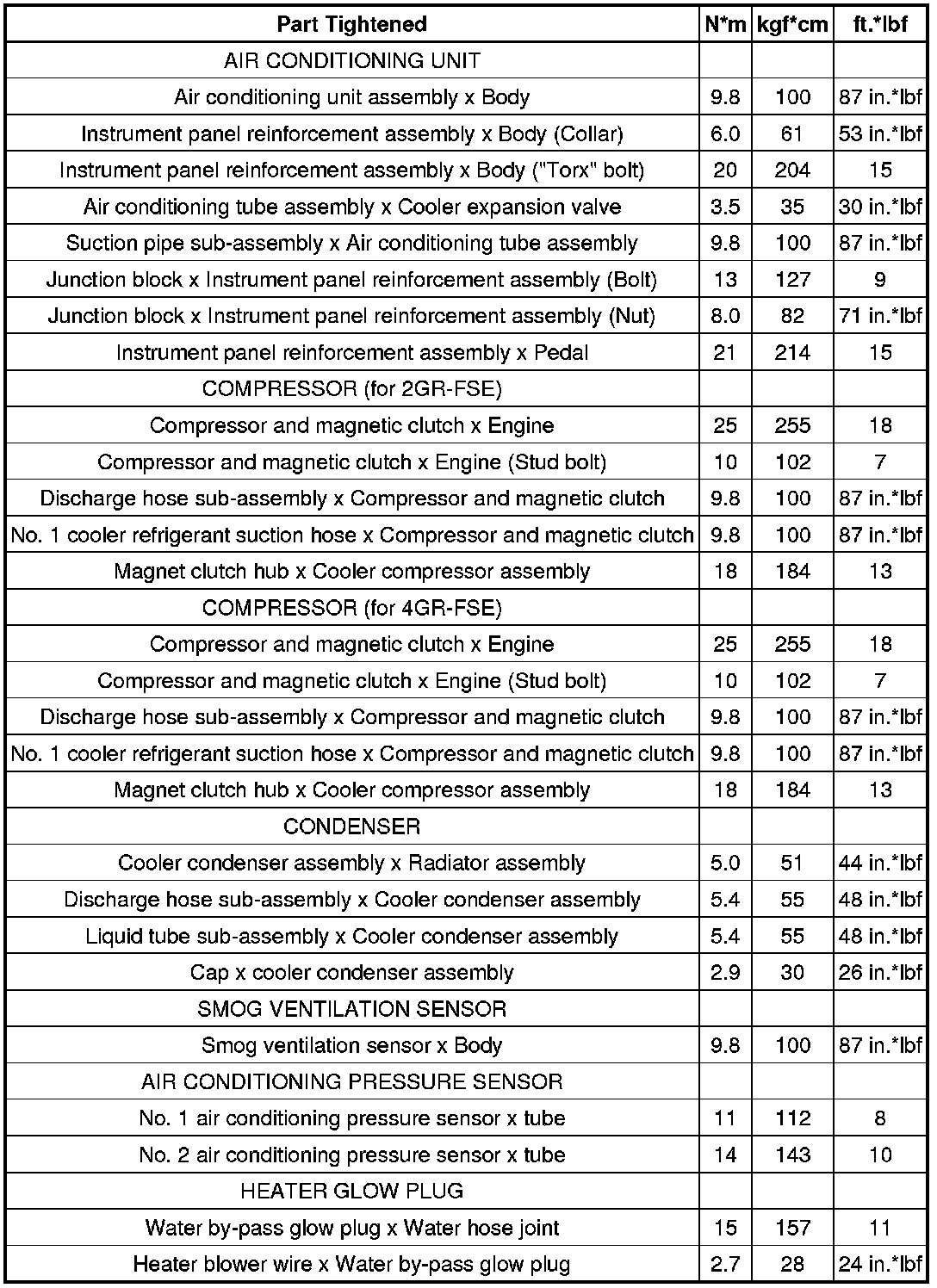 SPECIFICATIONS: HEATING / AIR CONDITIONING: TORQUE SPECIFICATIONS
