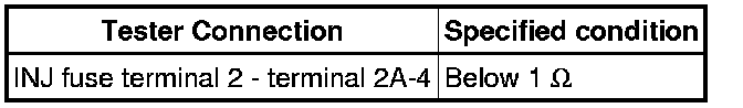 (1) Remove the INJ fuse. Using an ohmmeter, measure the resistance between the terminals.