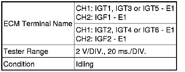 Igniter IGT signal (from ECM to igniter) and igniter IGF signal (from igniter to ECM)