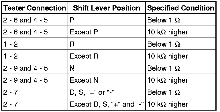 A960E AUTOMATIC TRANSMISSION / TRANSAXLE: PARK / NEUTRAL POSITION SWITCH: INSPECTION