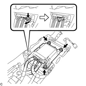 (c) Disconnect the connectors from the center airbag sensor assembly as shown in the illustration.