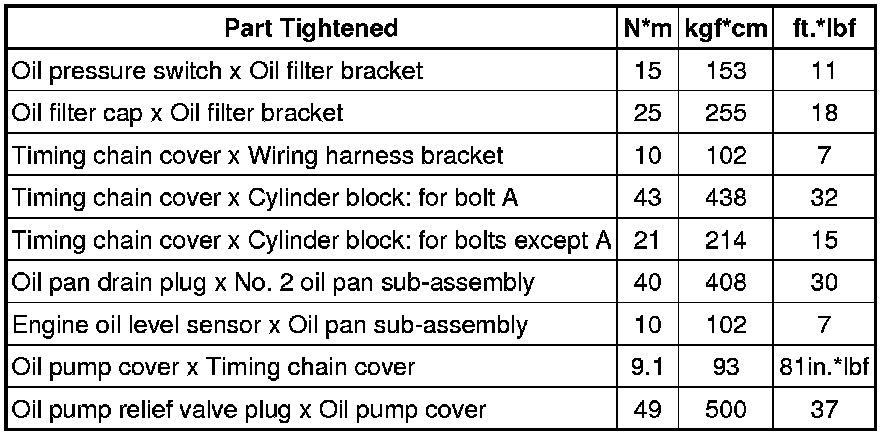 SPECIFICATIONS: 4GR-FSE LUBRICATION: TORQUE SPECIFICATIONS