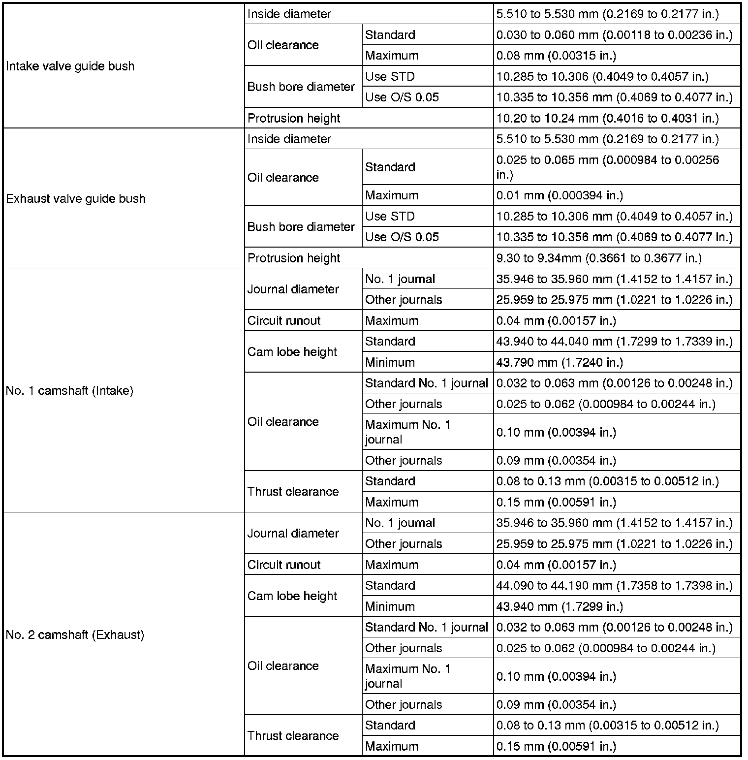 SPECIFICATIONS: 4GR-FSE ENGINE MECHANICAL: SERVICE DATA