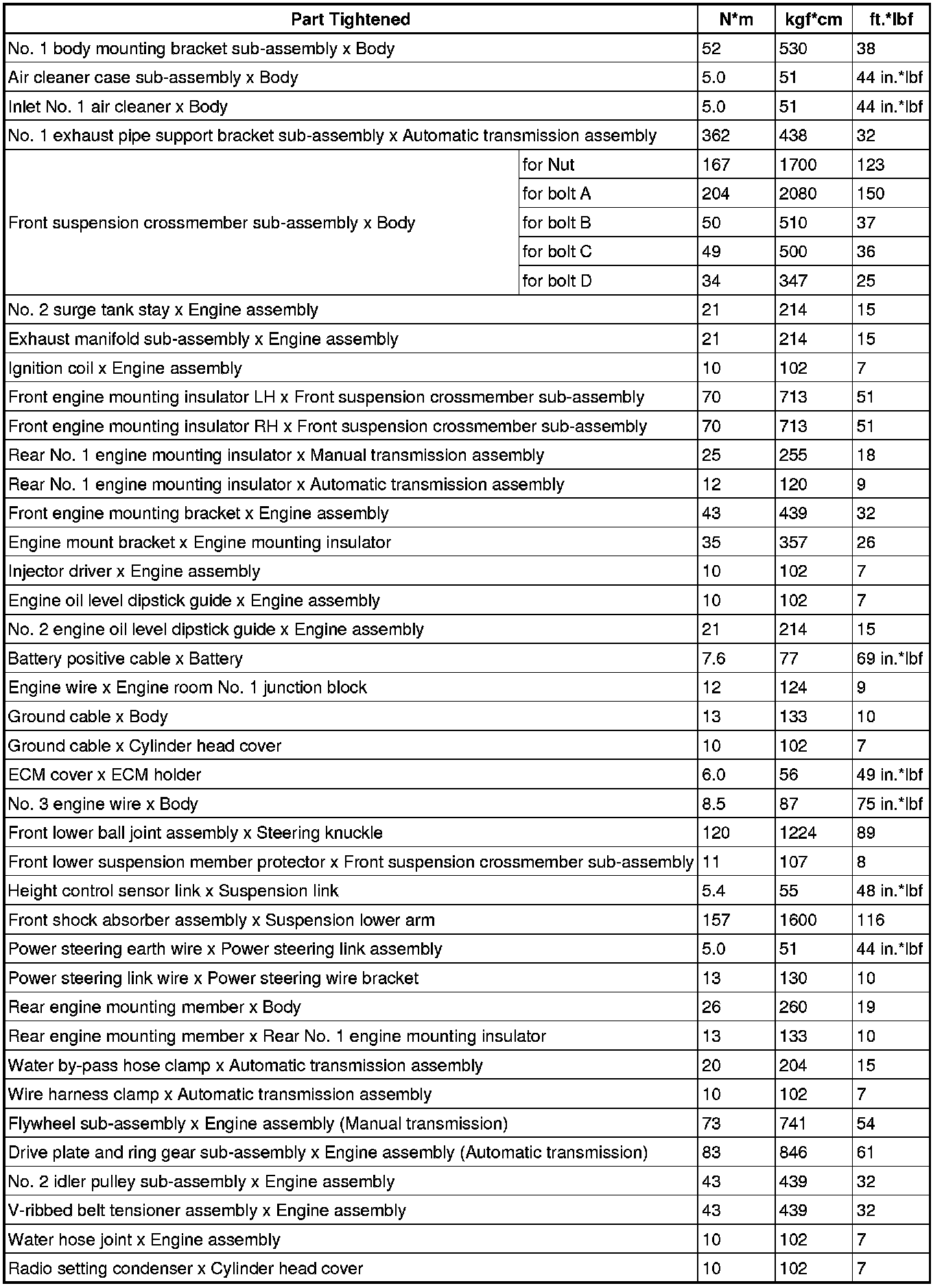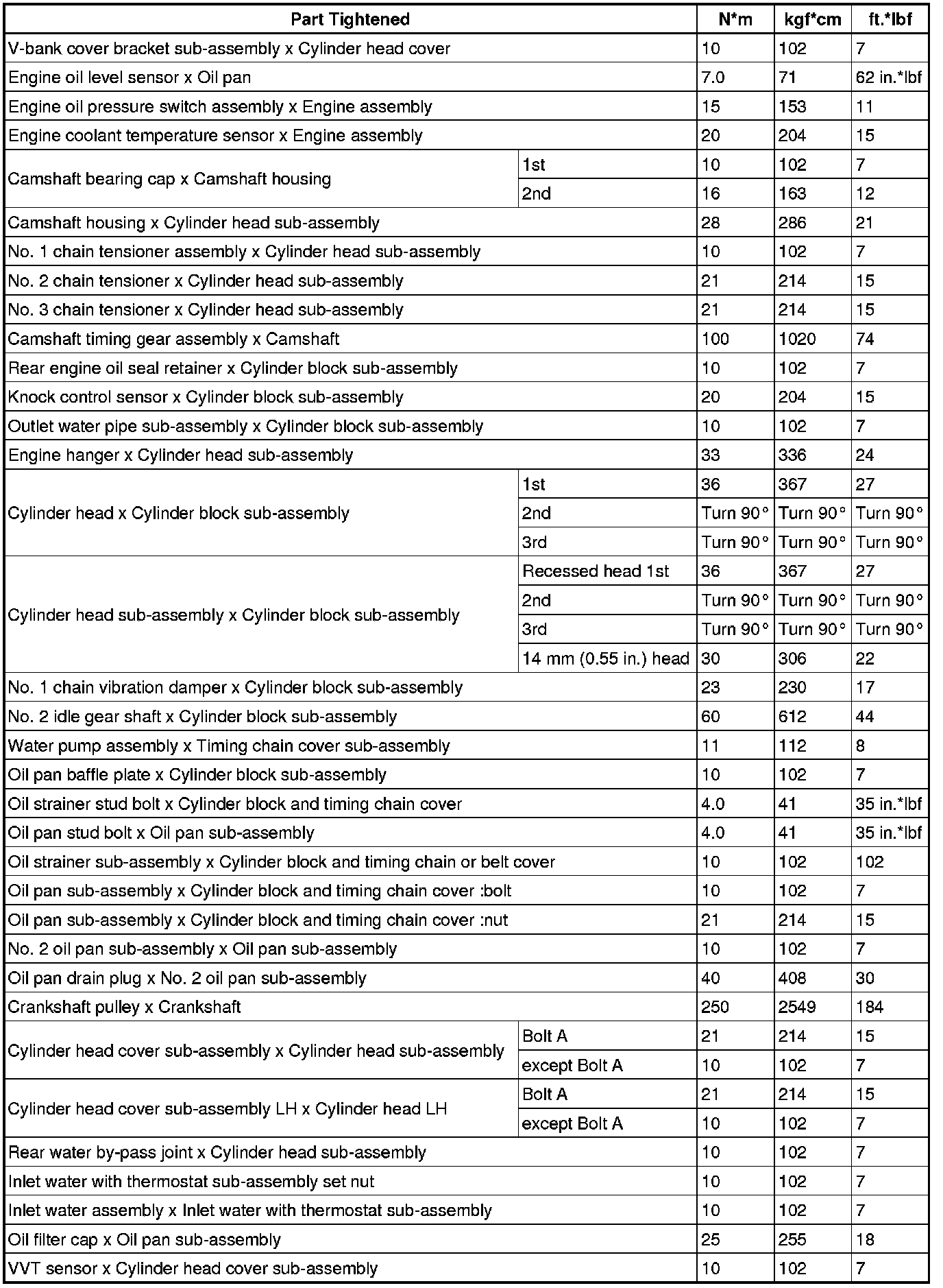 SPECIFICATIONS: 4GR-FSE ENGINE MECHANICAL: TORQUE SPECIFICATIONS