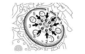 In several steps, uniformly install and tighten the 8 bolts in the sequence shown