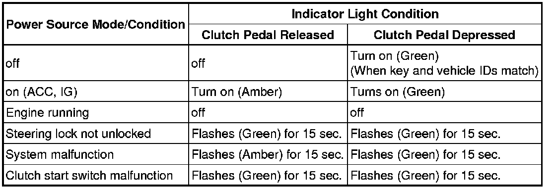 Engine start conditions or system malfunctions can be checked by the status of the engine switch indicator light.