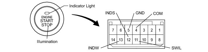 THEFT DETERRENT / KEYLESS ENTRY: SMART ACCESS SYSTEM WITH PUSH-BUTTON START (for Start Function): Engine Switch Indicator Circuit