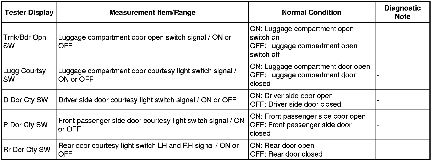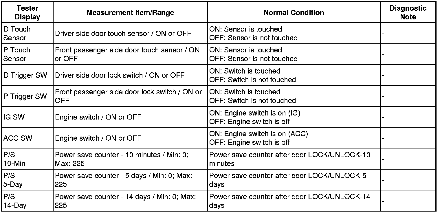 DOOR LOCK: SMART ACCESS SYSTEM WITH PUSH-BUTTON START: DATA LIST / ACTIVE TEST