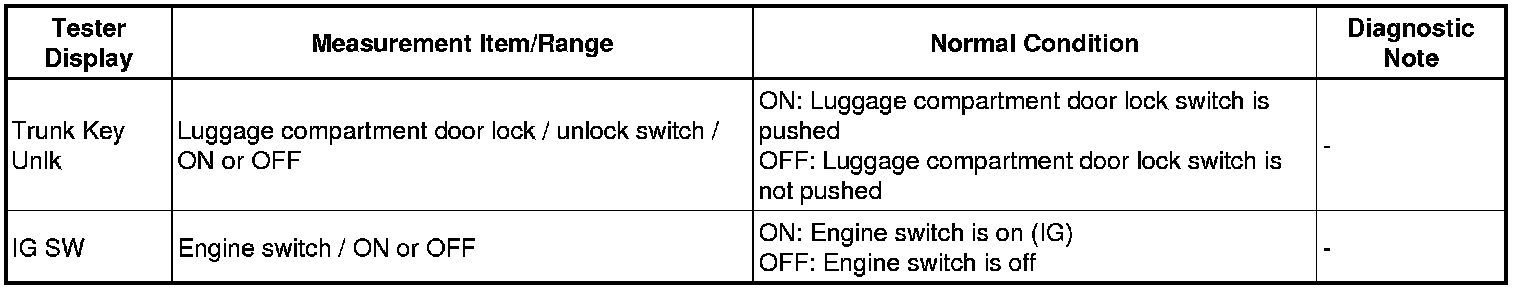 Home >> Lexus >> 2012 >> IS 350 AWD V6-3.5L (2GR-FSE) >> Repair and Diagnosis >> Body and Frame >> Locks >> Keyless Entry >> Testing and Inspection >> Scan Tool Testing and Procedures >> Smart Access System With Push-Button Start