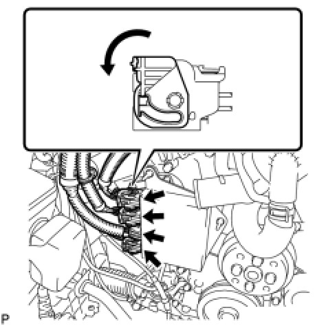 (b) Connect the 3 connectors with wire harness locks and the connector to the injector driver. Move the lock lever in the direction indicated by the arrow to lock the connector.