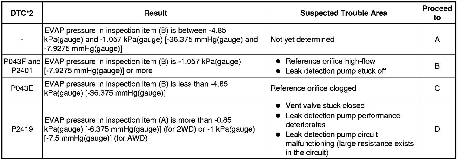 * *2: This result suggests that due to purge line blockage or purge VSV malfunction, the DTC was stored by the purge flow monitor while the engine was running, or that key-off monitor test result were nearly borderline values.