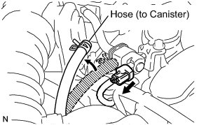 (a) Disconnect the hose (connected to the intake air surge tank assembly) from the purge VSV.