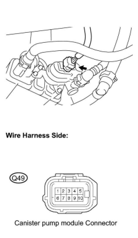 B -- INSPECT CANISTER PUMP MODULE (POWER SOURCE FOR VENT VALVE)