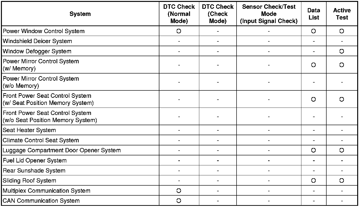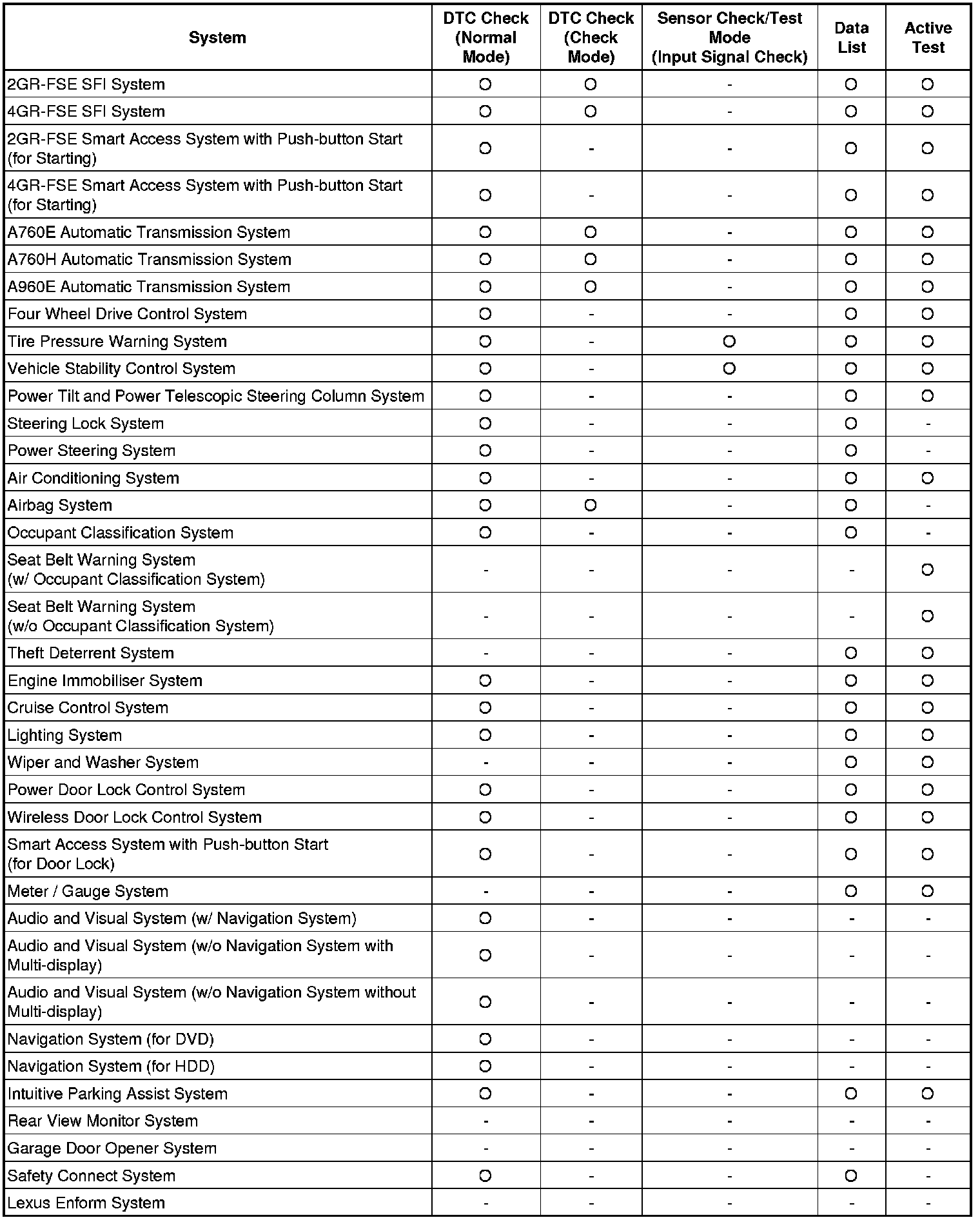 By using these functions, the problem areas can be narrowed down and troubleshooting is more effective. Diagnostic functions are incorporated in the following system in the LEXUS IS250/350.