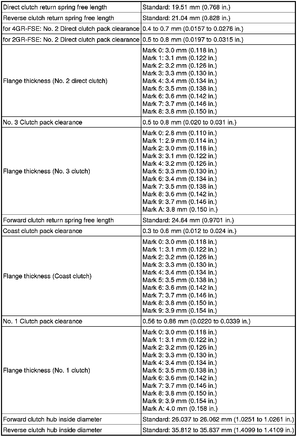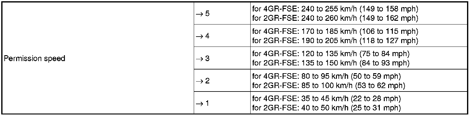 * All shift point values indicated in the above tables are actual values. Therefore, if checking a shift point with a chassis dynamometer, keep in mind that there is a range of error in the chassis dynamometer indication.