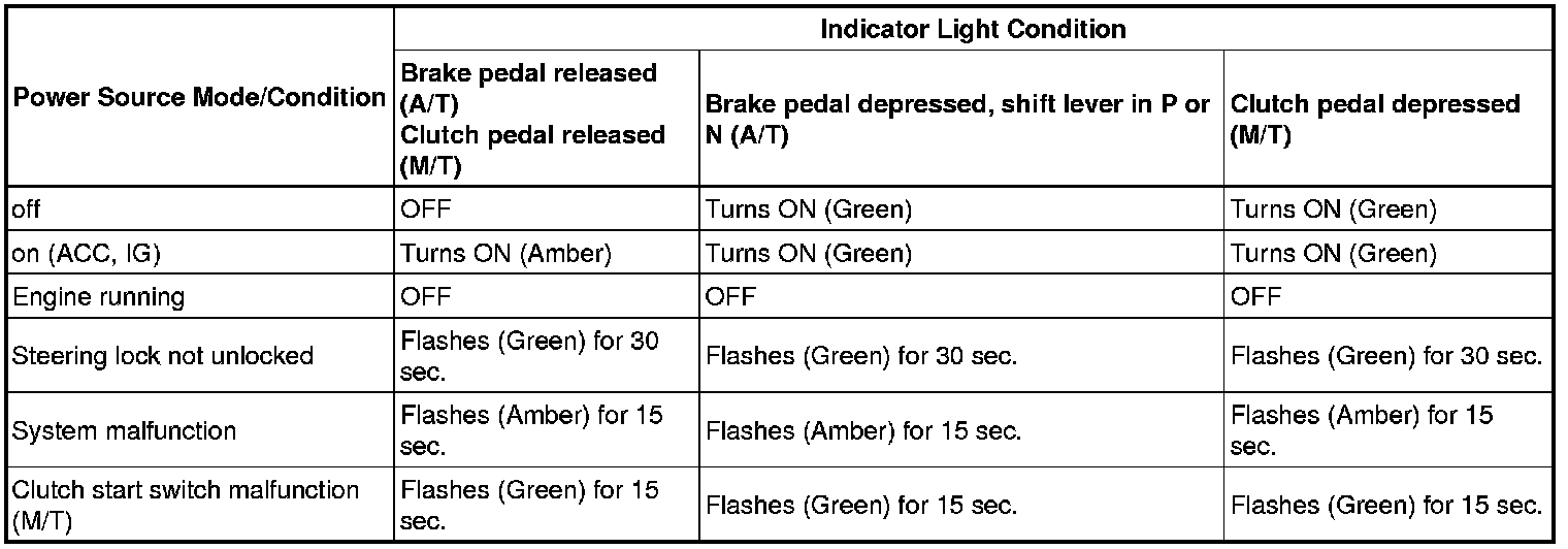* The amber and green LEDs are for the indicator lights. The driver can check the present power source mode and whether the engine can start in accordance with the illumination state of the indicator light.