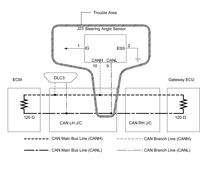 NG -- REPAIR OR REPLACE STEERING ANGLE SENSOR BRANCH LINE OR CONNECTOR (CANH, CANL)