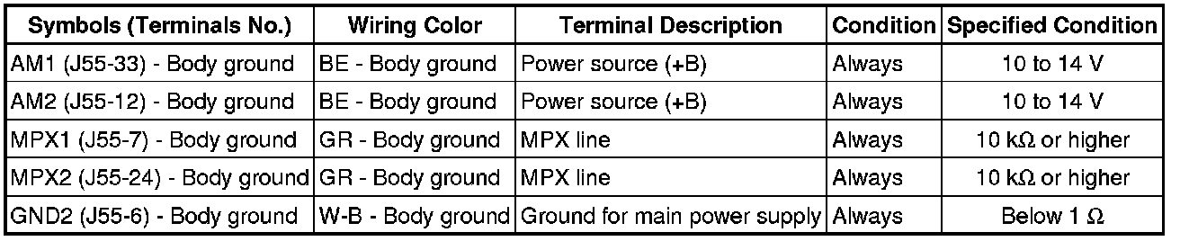 If the result is not as specified, there may be a malfunction on the wire harness side.