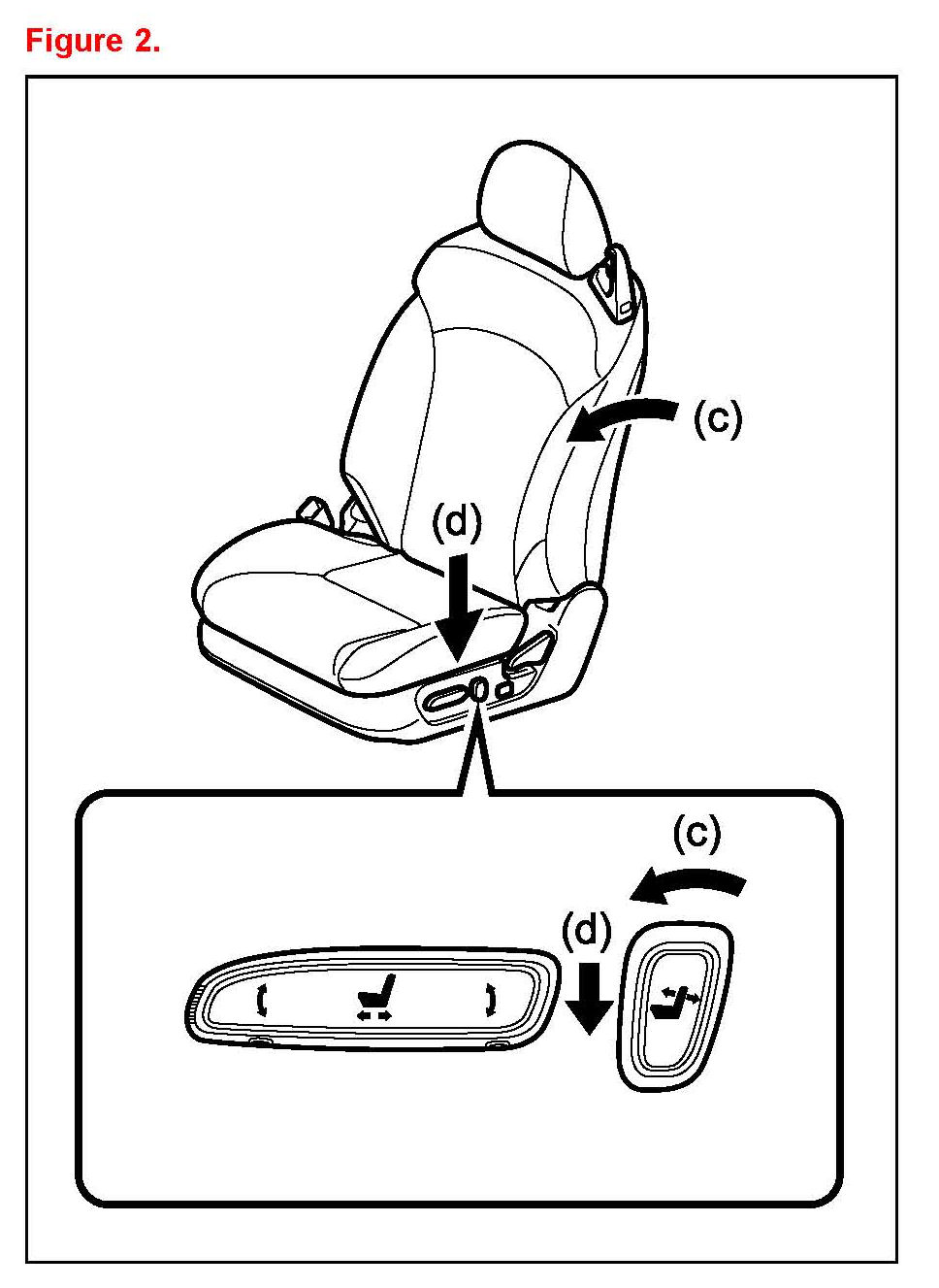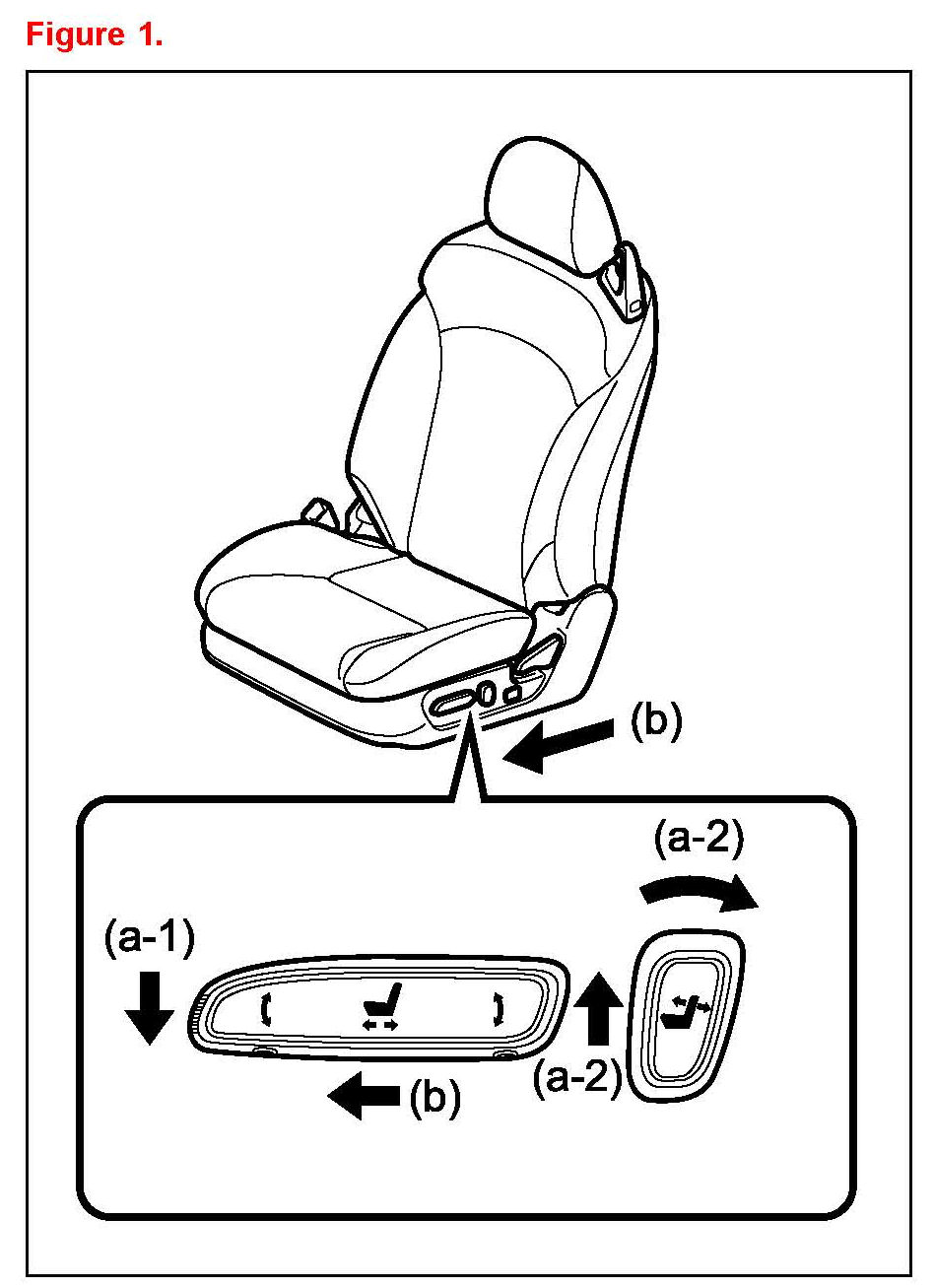 4. Push the seat position control switch forward, sliding the seat to the full forward or most forward position until a beep sound is emitted. Reference (b) in Figure 1.