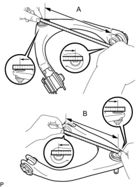 (2) Measure the dimension between the center of the front lower suspension arm assembly bush and the center of position A.