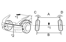 * Before inspecting the wheel alignment, adjust the vehicle height to the specified value.