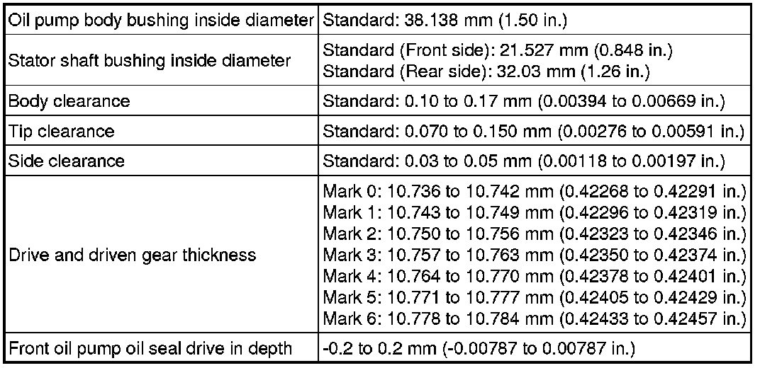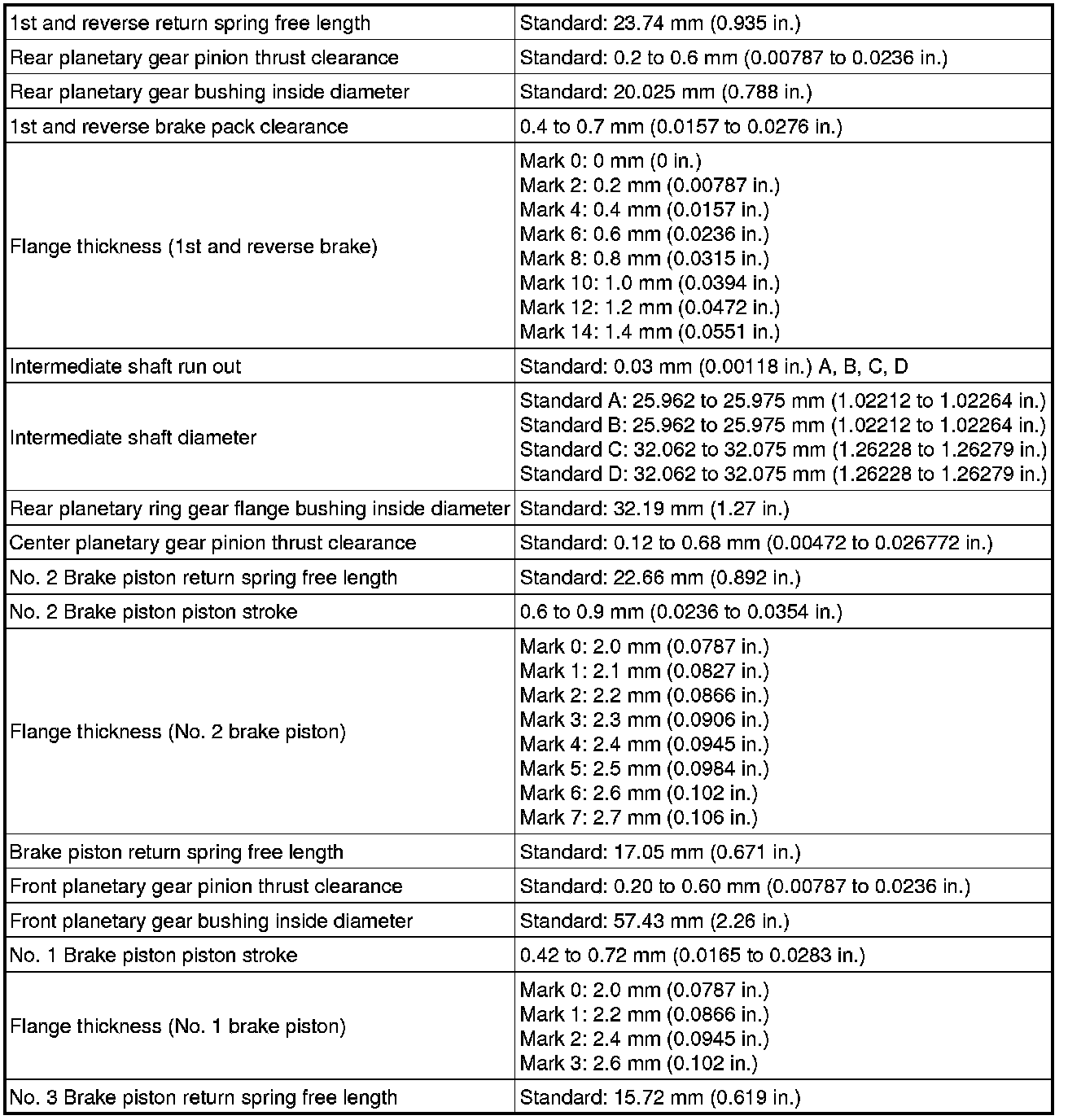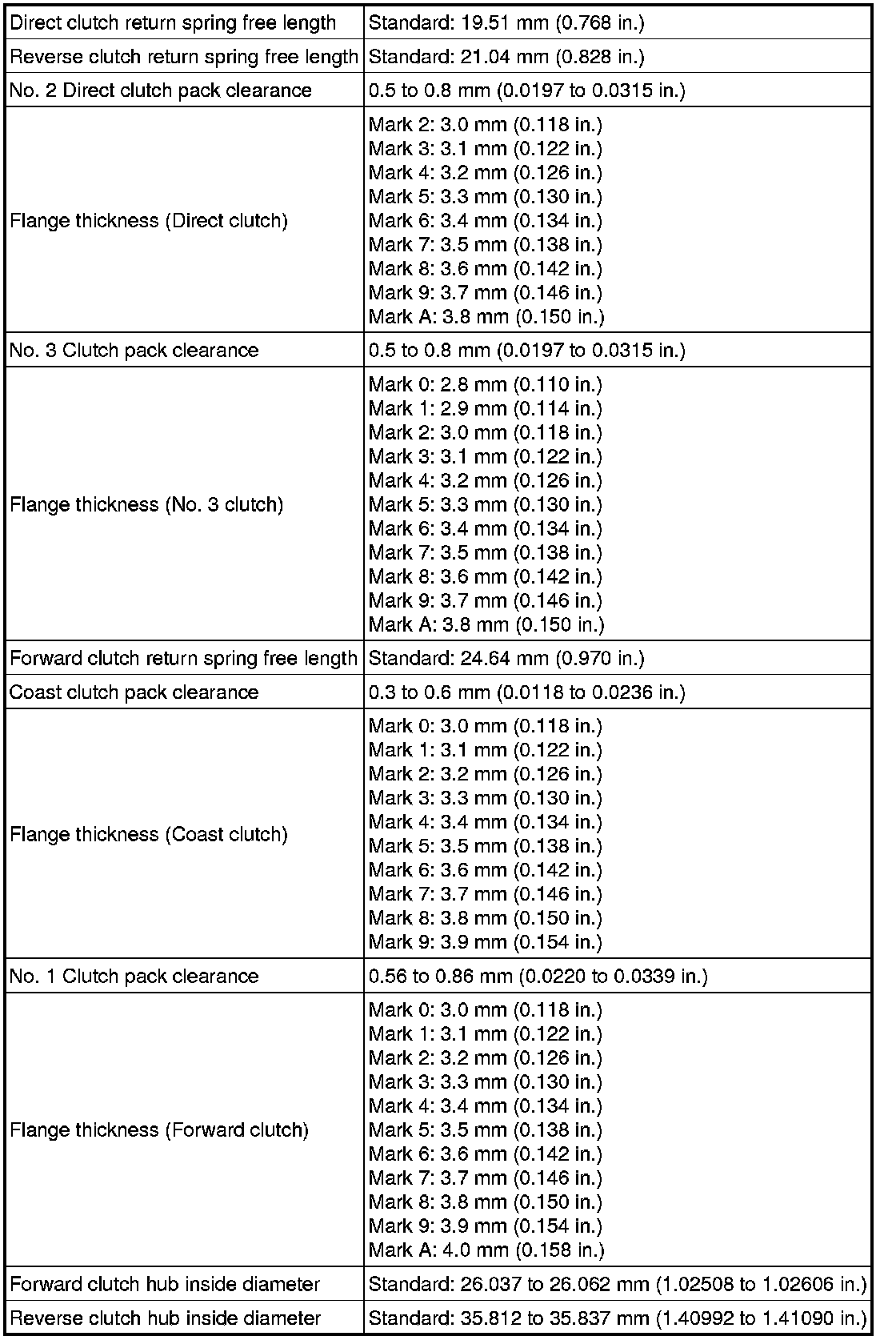 SPECIFICATIONS: A760E AUTOMATIC TRANSMISSION / TRANSAXLE: SERVICE DATA