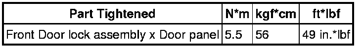 SPECIFICATIONS: DOOR LOCK: TORQUE SPECIFICATIONS