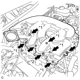 Install the intake air surge tank assembly with the 2 nuts.